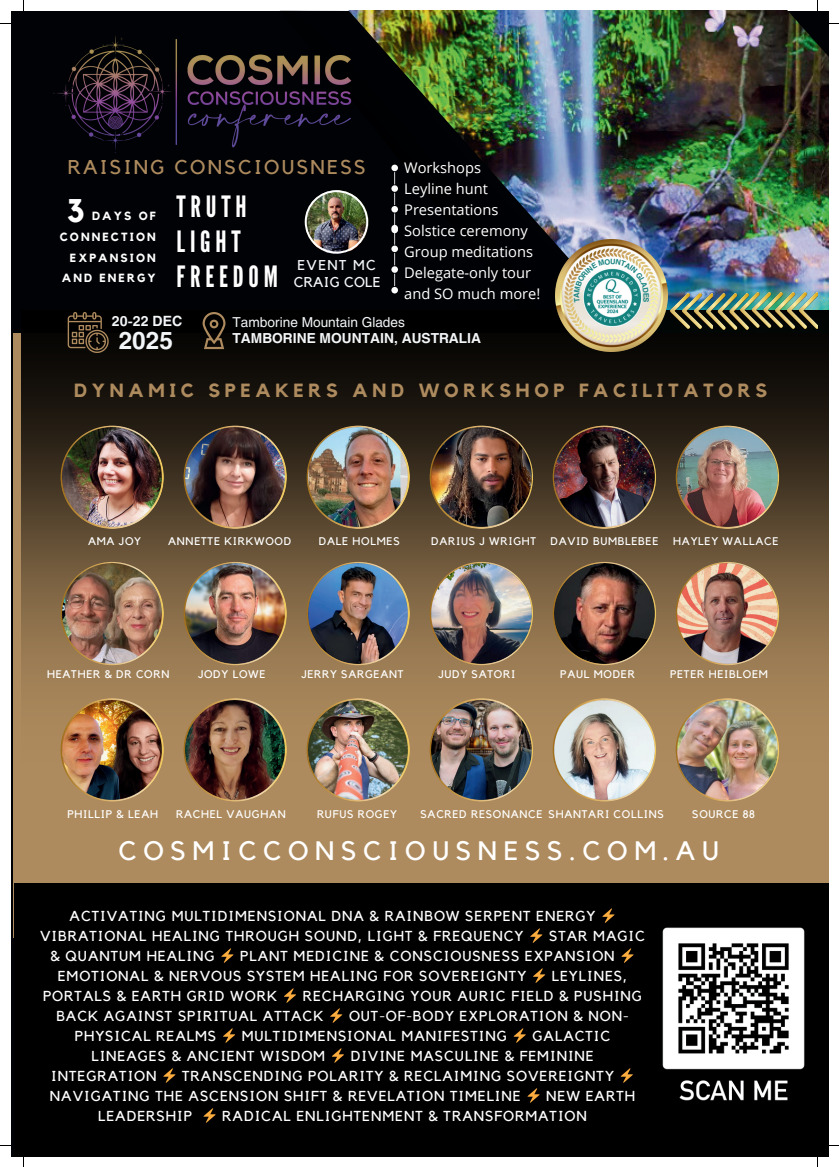 I’m excited to share that I’ll be one of the presenters at the 2025 Cosmic Consciousness Conference, taking place over the December Solstice at The Glades, nestled in the lush rainforest of Tamborine Mountain.